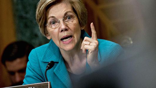 Senator Elizabeth Warren, during a Senate Banking Committee nomination hearing in Washington, D.C.