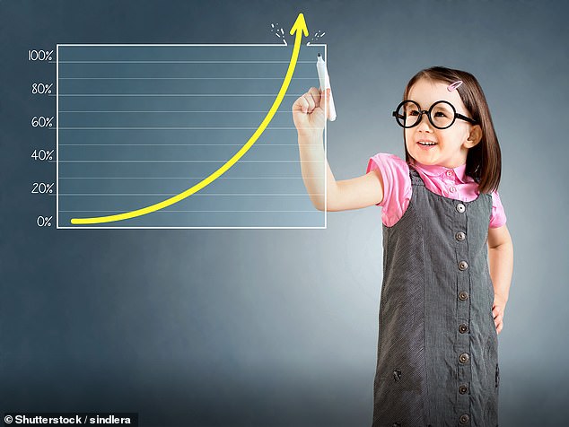 Cash Jisas offer higher interest rates than children’s savings accounts – but the drawback is that they cannot be touched until age 18. Financial scrutineer Moneyfacts says best rates are from Coventry Building Society (3.6 per cent), Danske Bank (3.45 per cent) and Darlington Building Society (3.25 per cent).